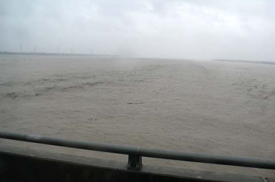 車子經過西螺大橋時..可怕的黃水滾滾而來..