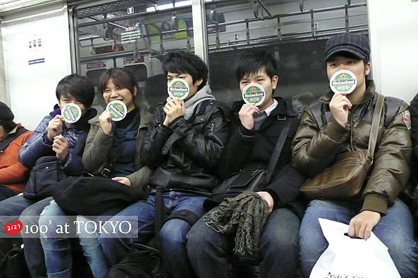 同學們,擠在電車上的樣子真有趣,拿著喔摸西漏衣男孩給的杯墊遮臉:P,