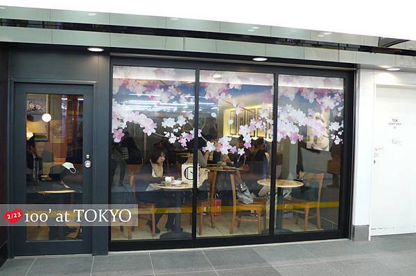 這時,主打櫻花拿鐵,櫥窗上的櫻花片片:D