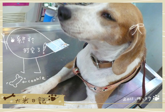昨天帶大米去新的醫院洗澎澎順便植入晶片及打預防針,心情像是在洗三溫暖。