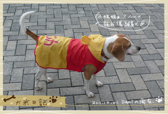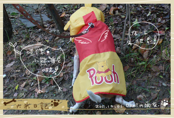 這款雨衣是維尼裝,帽子是維尼的頭,可惜都會掉下來,可能要改裝一下了。