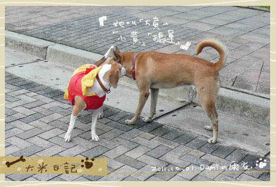 這隻大黃聽旺旺的把拔說,以前是一起跟大米流浪的,