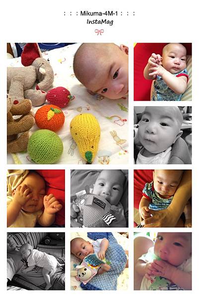 已經會左右翻身了,會自己選擇玩具,會想要去抓自己的腳了,沒事還愛「噗」個不停,可愛極了!