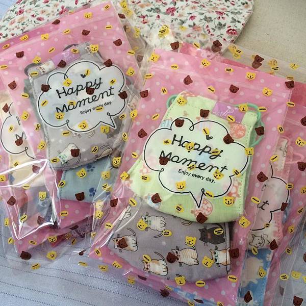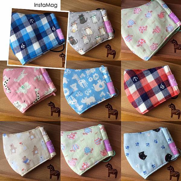 手作商品目前主打媽媽寶寶用品(口水巾、圍兜、髮帶、平安符袋、媽媽手冊..等)將原本做來給自己小寶寶用的物品商品化走品牌路線,製作品牌Logo織標,為了有別於其他同性質商家,特別挑選最適合寶寶使用的日本二重紗及美國天然棉,成本比較高但賣的安心,粉絲頁及社團會同步更新二重紗花色相簿,提供客人依照喜好挑選;另外二重紗柔軟親膚的特性也很適合拿來製作口罩,依照個人尺寸客製,其他手作類也是以日本及韓國進口布為主,製作期會抓三週左右,布料來源大部分是透過布料社團購入,少部分是親自到產地購買,有些商品為了與別人不同,我特別設計手感十足的手工滾邊,自己用繡線一針一線縫製,這是個人特色;因為小孩還小為了省保姆費選擇自己帶,能製作商品的時間不多,所以有些前置作業我會發包出去給別人加工,再拿回來做後製部分及出貨的包裝,包裝部分是去大創找適合的包裝材料搭配使用,等收入穩定才會設計專用的包裝方式。